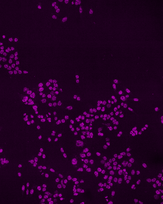 Staining receptors expressed in human cells via immunofluorescence allows assessment of their localisation, and how this may change following treatment.